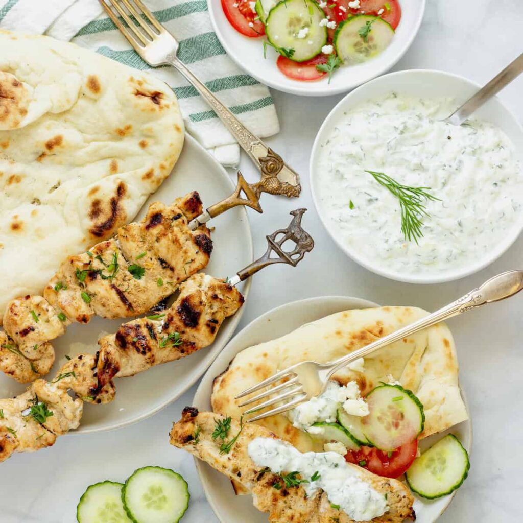 This dish brings the flavors of Greece to your table with grilled, marinated chicken and a creamy, tangy tzatziki sauce.