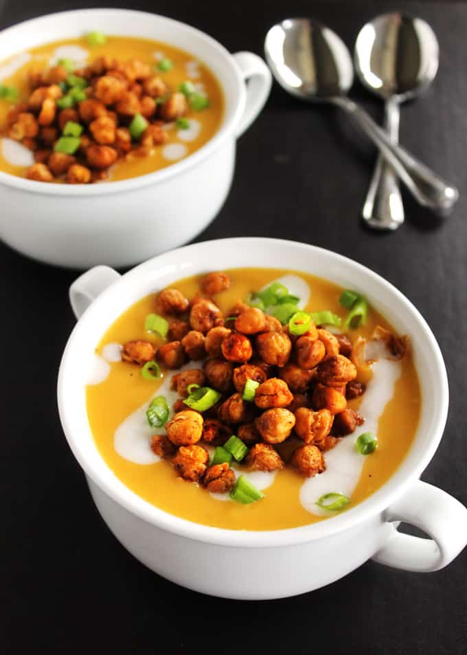 Butternut Squash Soup with Smoked Gouda and Spicy Chickpeas