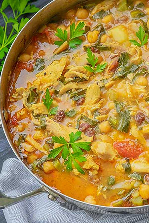 This Moroccan-inspired stew features tender turkey and roasted chickpeas simmered with warm spices and vegetables.