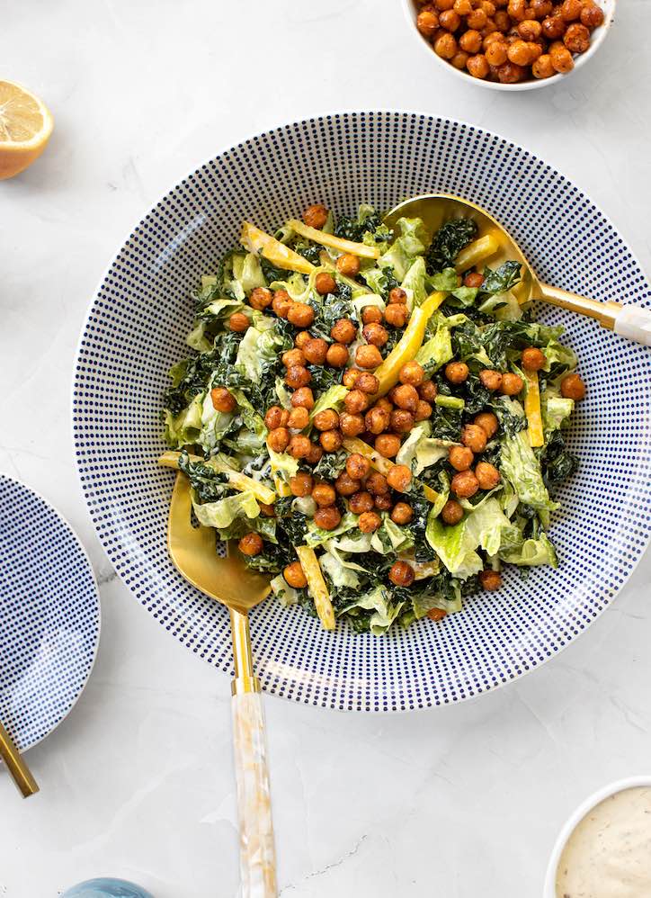 Vegan Kale Caesar Salad with Spiced Chickpeas